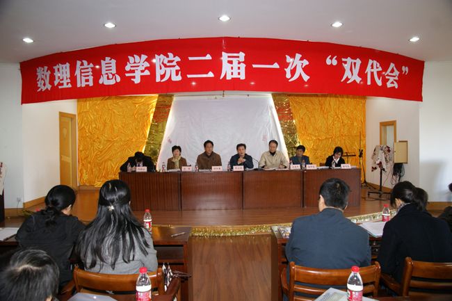 华小洋副校长作了重要讲话。他首先充分肯定了数理信息学院前两年所取得的成绩,对我院的学科建设、教学和科研工作给予高度评价。华副校长同时希望与位代表要以高度负责的态度、满腔热情,积极行使好自己的权力和职责,为学院的发展献言献策,把本次大会开成一个团结、和谐、鼓劲的大会,卓有成效的大会。他还要求数理信息学院要以申硕为契机,确保申硕成功。