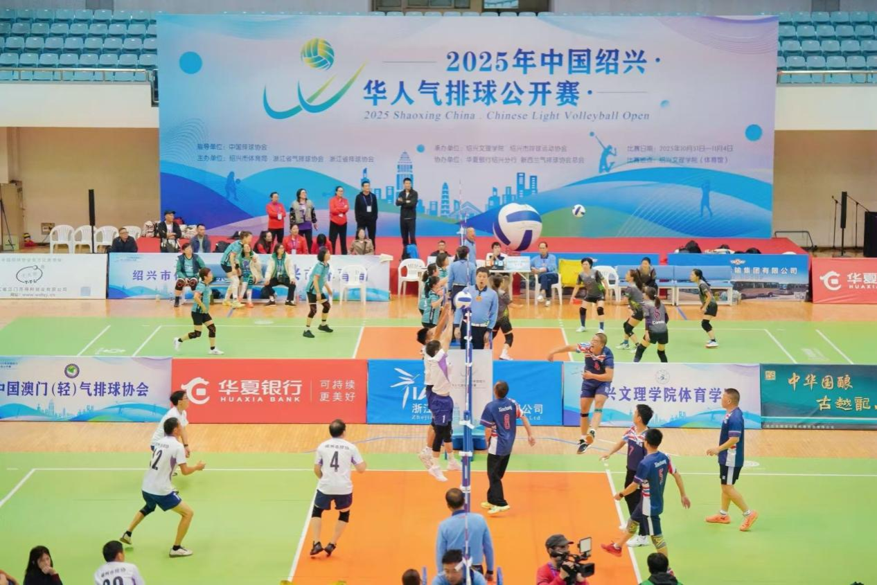 11月1-2日,由中国排球协会指导,绍兴市体育局、浙江省排球协会主办的2025年中国绍兴・华人气排球公开赛在绍兴文理学院风则江校区河西体育馆主馆开赛,来自全球8个国家和地区的气排球爱好者以球会友、同场竞技。